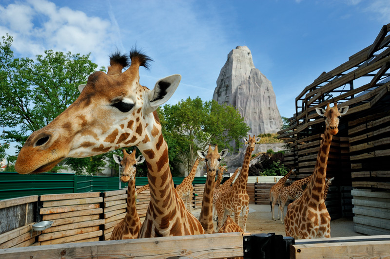 Le visiteur déambule de la grande serre tropicale spectaculaire de l’espace « Guyane » où l’on croise des oiseaux multicolores en plein vol, à la biozone « Patagonie » avec ses côtes rocheuses, des otaries et manchots qui nichent, à observer en vision subaquatique, en passant par la savane « Sahel-Soudan » avec ses troupeaux de girafes et de lions autour d’un lac d’où émerge le grand rocher mythique. Sans oublier, dans l’espace « Europe », une fascinante meute de 5 loups ! ».