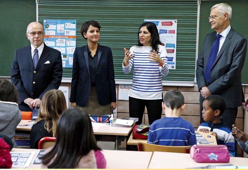 Malgré cela, de nombreux problèmes liés à la laïcité ont vu le jour à l’école : refus de faire certaines activités sportives, d’étudier certains textes, exigence pour les repas servis à la cantine… C’est pourquoi, le 9 septembre 2013, Vincent Peillon, alors ministre de l’Education nationale, a présenté la Charte de la laïcité qui « explicite le sens et les enjeux de la laïcité », délimite la liberté d’expression et propose des ressources pédagogiques. Mais les incidents dans les écoles après les attentats de janvier ont mis en lumière un problème plus profond de la laïcité et du vivre-ensemble à l’école. « Même si les contestations sont marginales, explique Sébastien Sihr, secrétaire général du Snuipp, syndicat enseignant majoritaire dans le primaire, il faut les prendre très au sérieux parce qu’elles montrent une école fracturée où une partie de la jeunesse, notamment celle qui vit dans la ségrégation, ne se reconnaît plus dans les valeurs de la République. » « Si entendre que l’école a failli est insupportable, ajoute Roland Hubert, co-secrétaire général du SNES, principal syndicat enseignant dans le second degré, elle n’est toutefois pas à part de la société et c’est légitime que la société l’interpelle. »