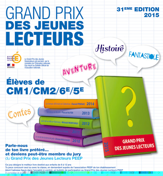 Créé par la Fédération PEEP dans le but de sensibiliser les jeunes à la lecture, le Grand Prix des Jeunes Lecteurs (GPJL) s’adresse aux élèves de CM1, CM2, 6e et 5e.