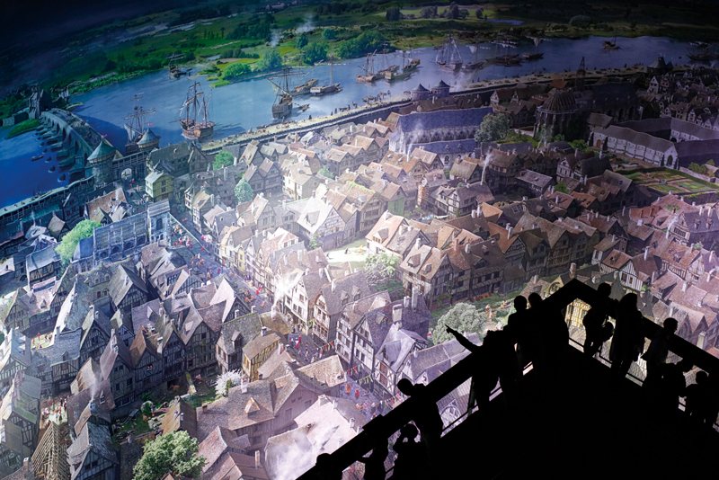 Que propose l’attraction ? « Ni une géode, ni un cinéma à 360°, sourit Laure Dufay. C’est une œuvre fixe de plus de 32 mètres sur 100, installée à 360 degrés. » En montant dans une nacelle centrale, le visiteur se retrouve piégé par les perspectives : on a l’impression d’être au cœur de l’image. Hyper réaliste, le résultat mêle reconstitution historique et dimension artistique. « On est littéralement submergé par l’œuvre d’art ! »
