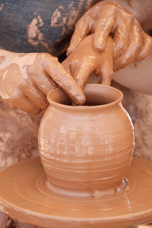 La terre est un élément vivant. Mouillée, elle est malléable. Sèche, elle se durcit. Cuite, sa forme devient définitive. C’est sur le principe de ce jeu sensoriel que se basent les cours de poterie pour enfants. Il n’est pas encore question d’utiliser un tour de potier (un outil qui demande de nombreuses années d’entraînement !), mais plutôt de manipuler des morceaux de terre pour réaliser des figures, des objets ou encore des tableaux en relief. C’est pourquoi, la poterie est accessible aux plus jeunes enfants, dès l’âge de 4 ans.