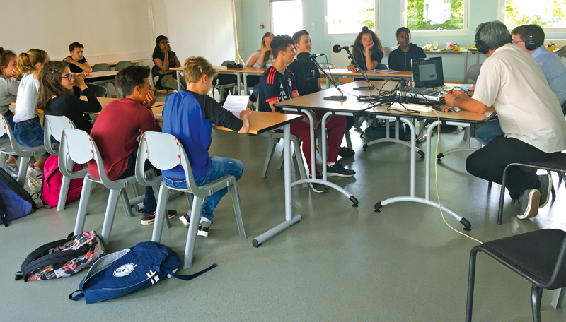 « Il y a deux ans, pour des élèves de 4e, j’ai mis en place un projet de web radio, avec l’aide de la commune de Chambly (voir photo ci-contre). Les élèves y ont vu l’opportunité d’aborder les sujets de la culture jeune. En tant que professeur, mon objectif était de les inciter à aller chercher l’information, mais de surtout vérifier leurs sources et de croiser les différents éléments… En plus de la web radio, les élèves doivent préparer leur sujet pour une édition papier : ils apprennent ainsi à traiter une information en fonction du média qui la diffusera. C’est en “faisant” qu’ils se montrent plus vigilants à l’esprit critique. De même, avec mes autres élèves, lors des cours d’histoire, de géographie ou d’EMC, je travaille beaucoup sur le questionnement. Face à eux, je pose des questions comme un ignorant. Ils se prennent au jeu et y répondent par eux-mêmes. Les interrogations qu’ils soulèvent permettent de rentrer dans le débat. »
