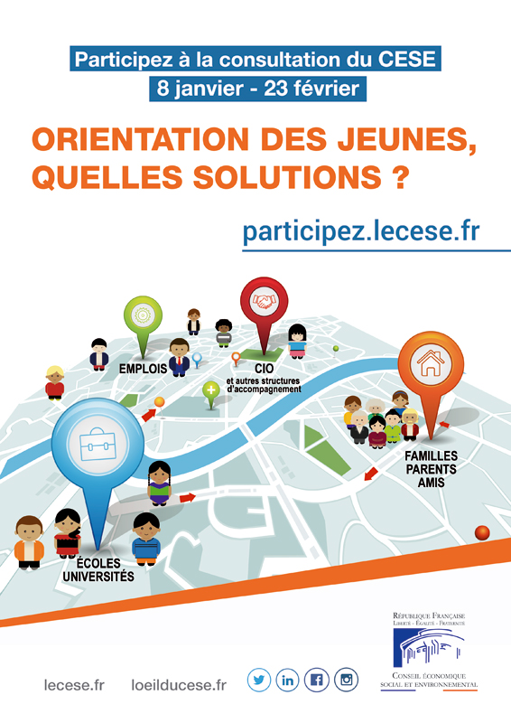 Le Conseil économique, social et environnemental lance le 8 janvier et jusqu’au 23 février une plateforme consultative en ligne sur le thème : « Orientation des jeunes, quelles solutions ? ».