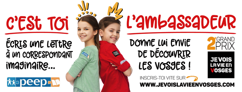 Pour la deuxième année consécutive, la Peep des Vosges propose aux élèves des classes de CM1-CM2 et collégiens scolarisés dans un établissement public vosgien de rédiger une lettre à un correspondant imaginaire pour lui donner envie de venir découvrir les Vosges. Un concours destiné à « promouvoir l’attractivité des Vosges et qui invite les jeunes à devenir de véritables ambassadeurs de notre territoire », explique Jacques Arnould, président de la Peep des Vosges.