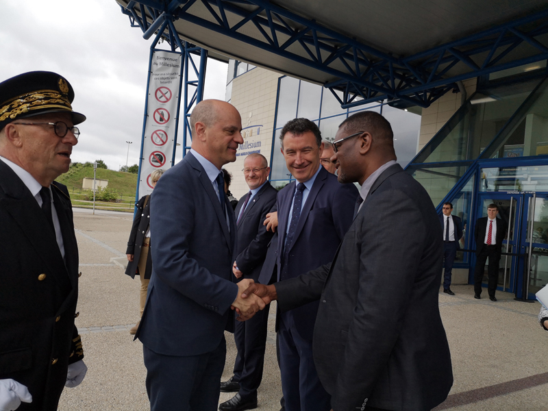Jean-Michel Blanquer, ministre de l’Education nationale, accueilli par le président Gérard Pommier. A gauche le préfet de la Marne, au centre le maire d’Epernay, Franck Leroy.